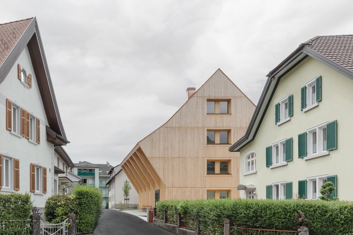 The external appearance of the house is a particular concern of the architects. They wanted the building to blend naturally into the 'Hohenems cityscape', so they designed a façade system of untreated wood that allows the building to 'age' into the site with calm serenity.