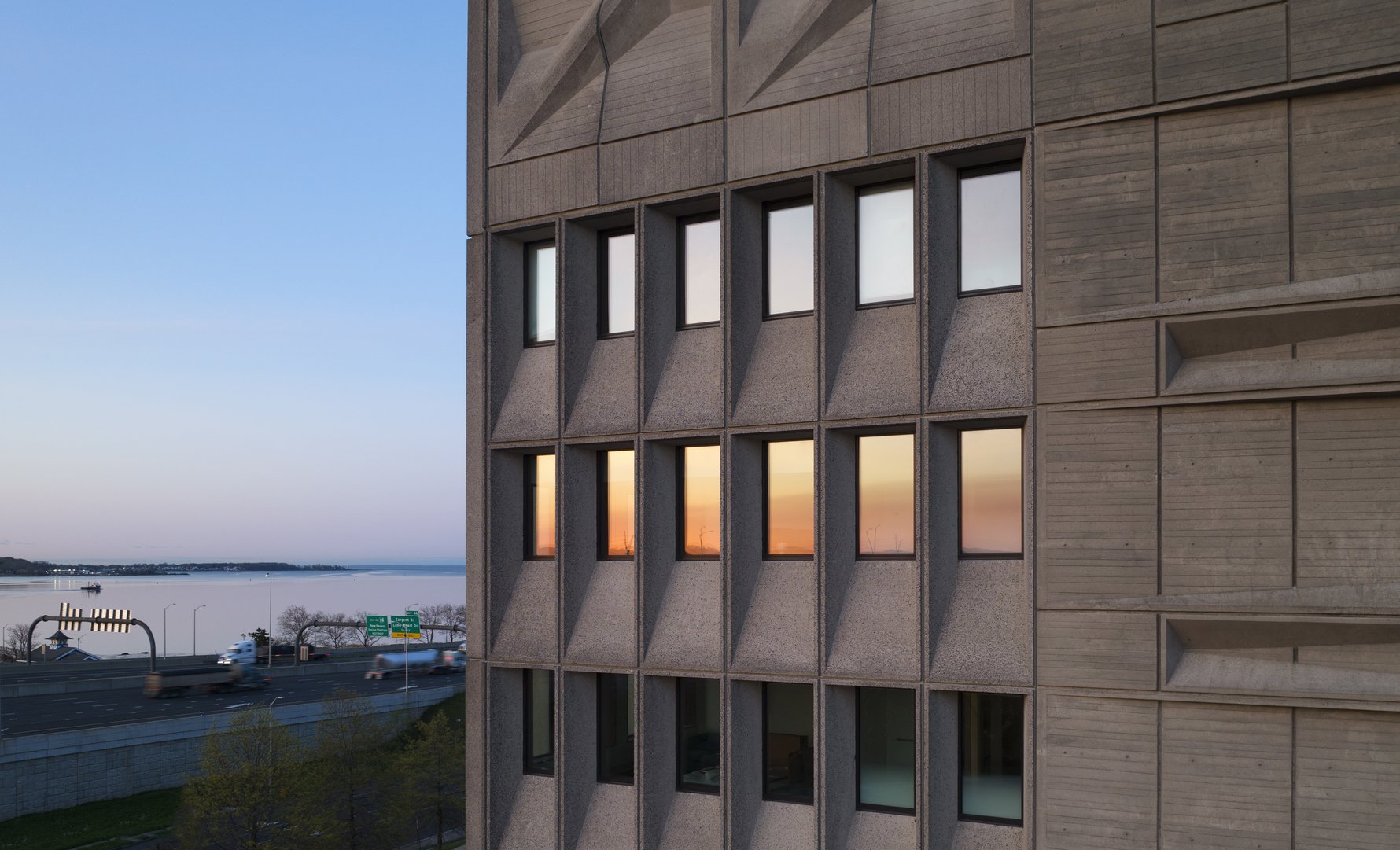 Hotel Marcel is the result of the renovation of the Armstrong Rubber Company Building, an office and research building designed by Marcel Breuer in 1969. The iconic structure was transformed into a 165-room boutique hotel. In September 2023, it will become the first hotel in the US to be certified as a Passive House.